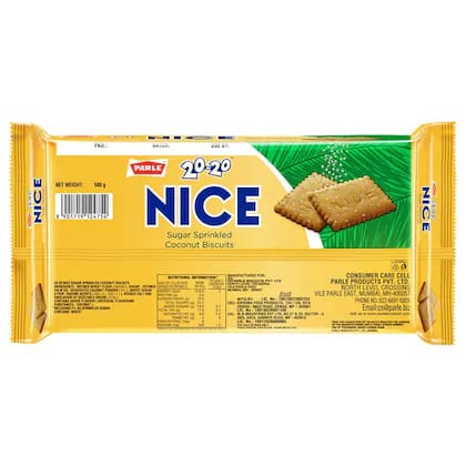 Features & Details Coconut biscuits Sugar sprinkled Description Immerse yourself in the crunchy taste of Parle 20-20 Nice Sugar Sprinkled Coconut Biscuits. It's a perfect tea-time snack, but you can also have it to kill those boring hours while you are travelling in a train. It's made from the finest quality of ingredients so that you get a product that combines quality and taste at the same time. So, go ahead, buy Parle 20-20 Nice Sugar Sprinkled Coconut Biscuits online today! : Disclaimer: Despite our attempts to provide you with the most accurate information possible, the actual packaging, ingredients and colour of the product may sometimes vary. Please read the label, directions and warnings carefully before use.