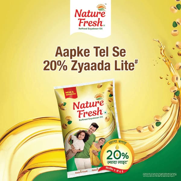 The product shown is Nature Fresh Acti-Lite Refined Soyabean Oil. It is a cooking oil made from high-quality soybeans. The oil is fortified with vitamins A, D, and E. It is a rich source of Omega-3 fatty acids, which are beneficial for heart health. The refining process is designed to ensure less oil absorption in cooked food. The oil is suitable for various cooking methods, including frying, sautéing, and baking. : The product shown is Nature Fresh Acti-Lite Refined Soyabean Oil. It is a cooking oil made from high-quality soybeans. The oil is fortified with vitamins A, D, and E. It is a rich source of Omega-3 fatty acids, which are beneficial for heart health. The refining process is designed to ensure less oil absorption in cooked food.